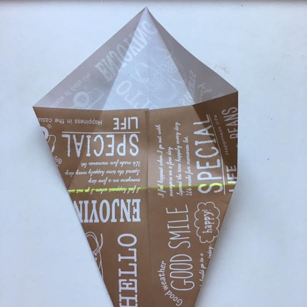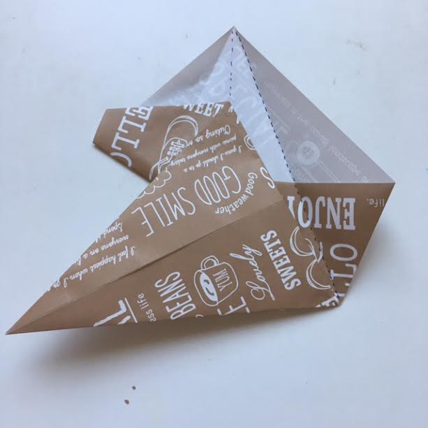 ⑧下の部分(③の手順で折った)を重ね合わせ、上の部分も合わせてつぶして折ります。