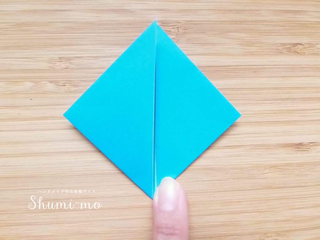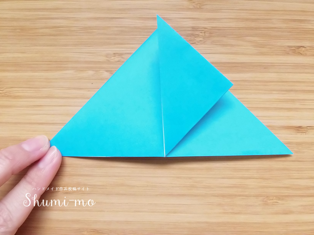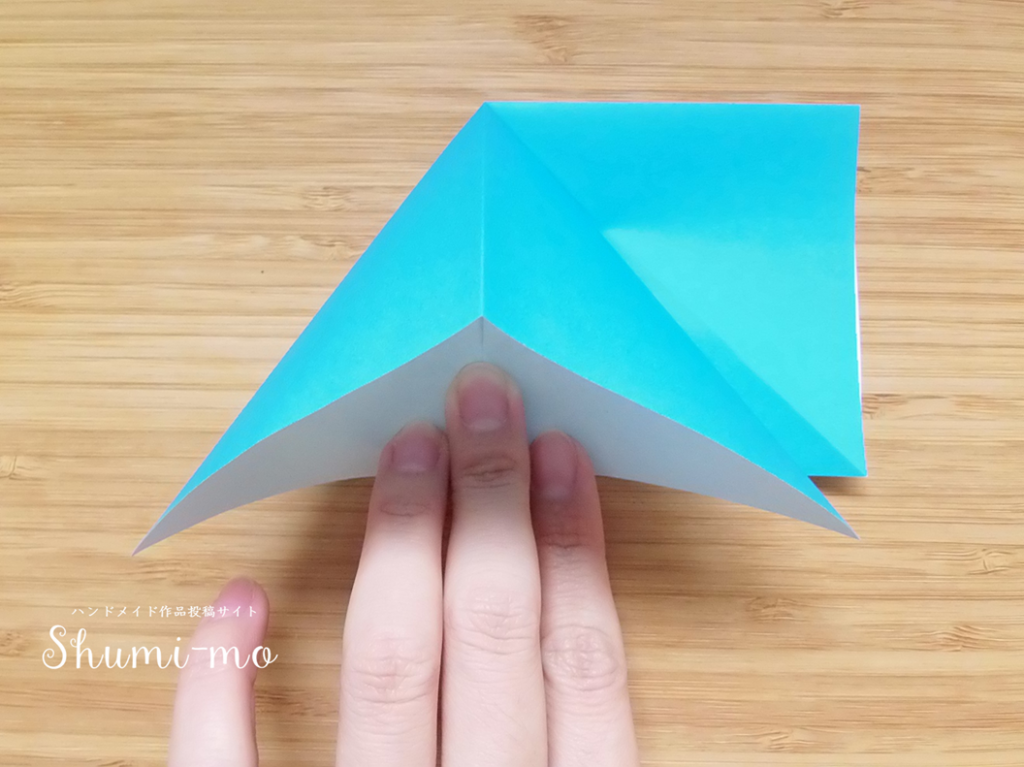 ⑤両サイドの角を真ん中の線に合わせて折ります。