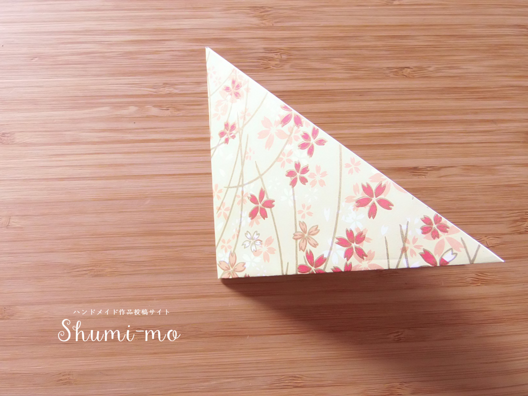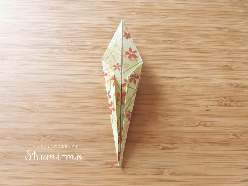 ここまでは通常の折り鶴と同じ折り方になります。次から折り方が変わっていきます。