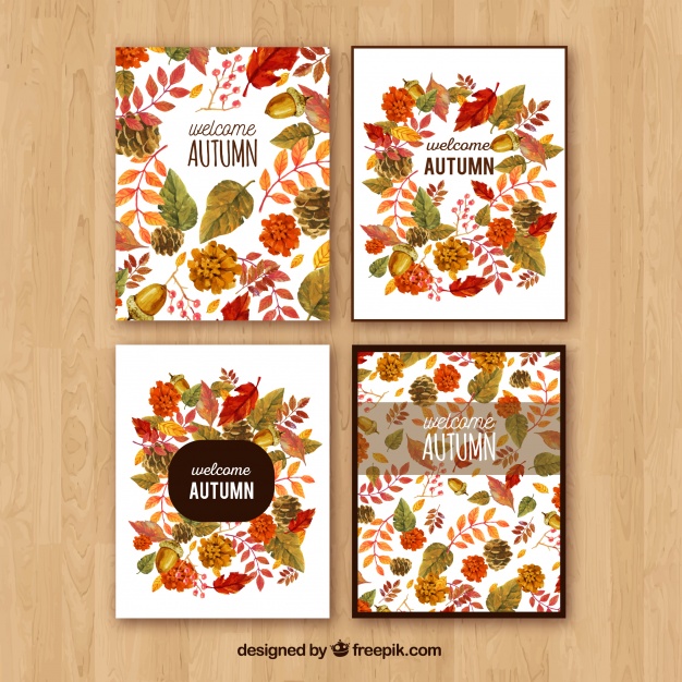 ダウンロードURL:http://www.freepik.com/free-vector/watercolor-cards-collection-with-autumn-leaves_1247820.htm